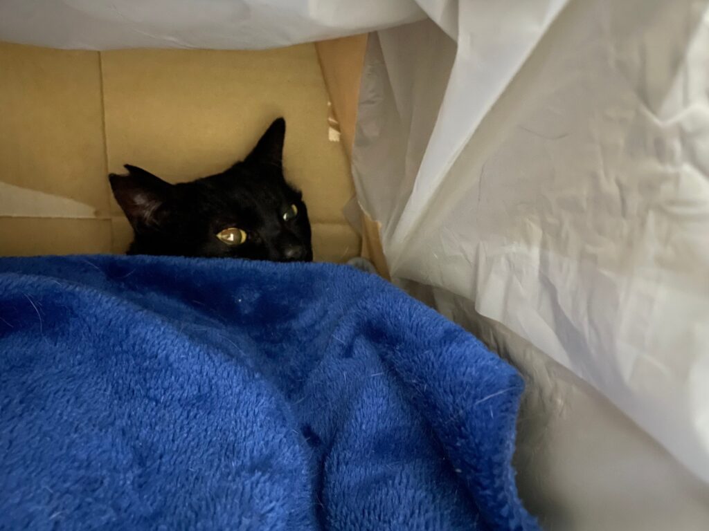 何年も外猫として暮らしてきたクロエとキイは、突然保護されてお家の中に入れられてかなり戸惑っています。無理もないかな。